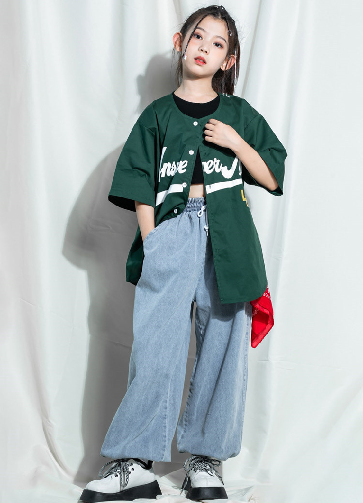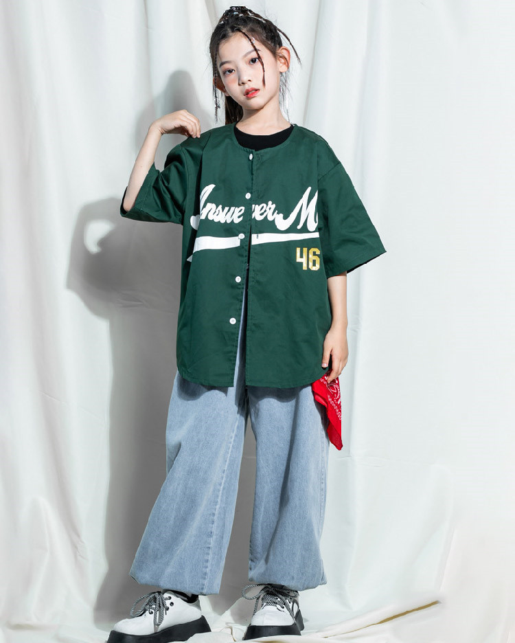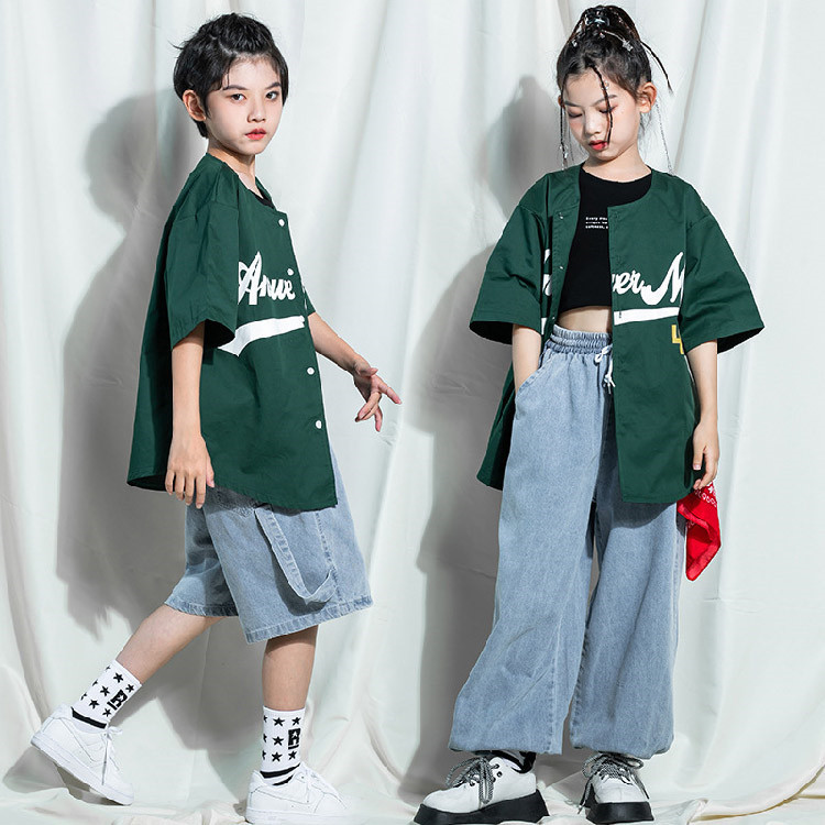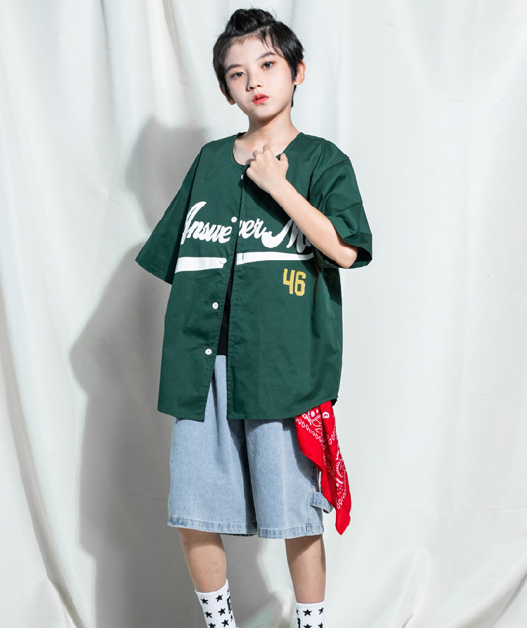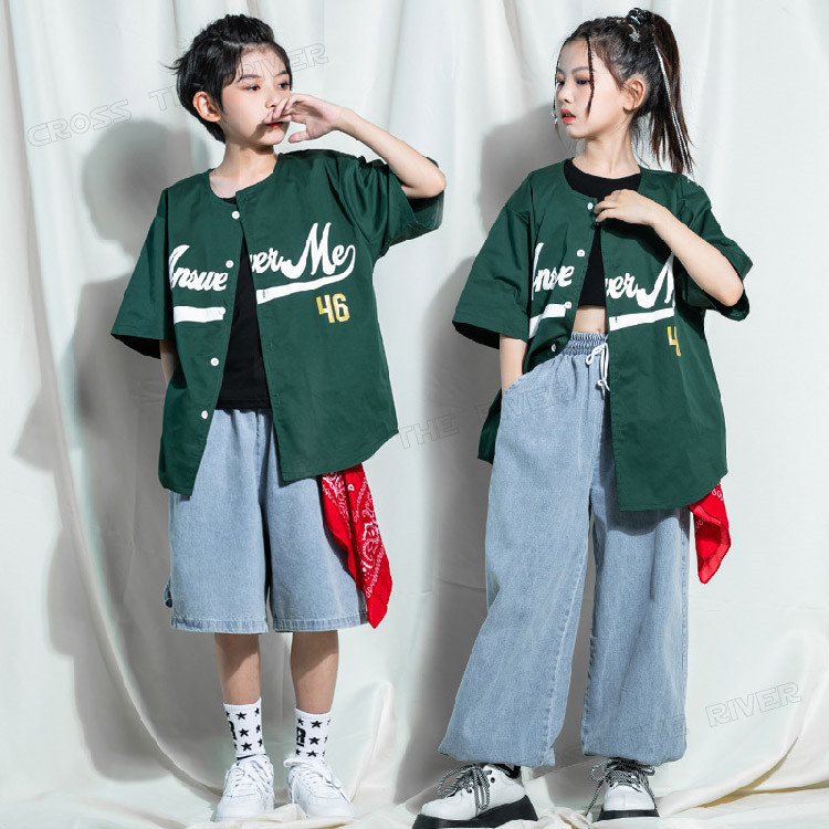 ベースボールシャツ ダンス衣装 ヒップ スポーツ アウトドア 特集 緑シャツのみ 短パンツのみ ロングパンツのみ 緑シャツ+短パンツ 緑シャツ+ロングパンツ (画像色)女の子3点セット 緑シャツ+男タンクトップ+短パンツ 110cm 120cm 130cm 140cm 150cm 160cm 170cm 180cm