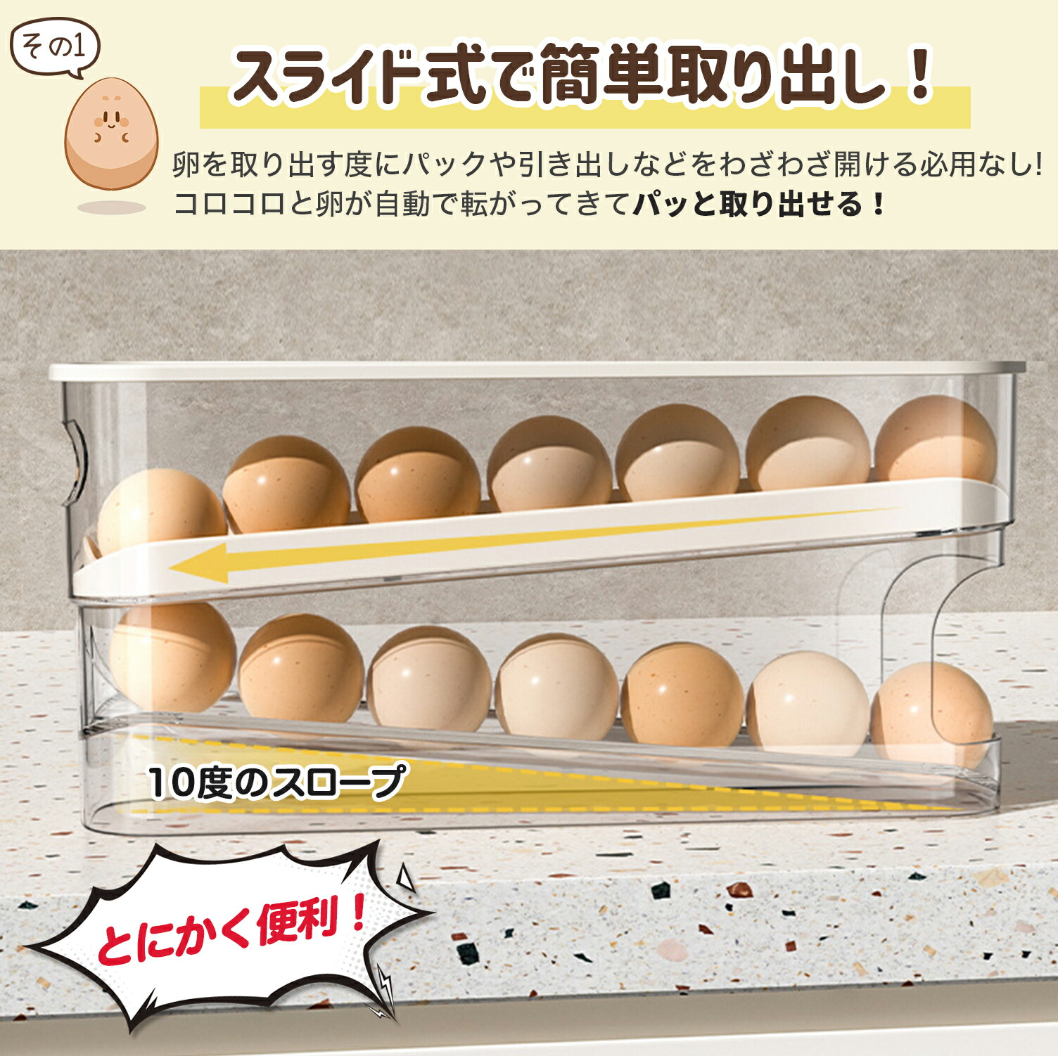 卵収納ケース 卵ケース スライド式卵収 キッチン用品 食器 調理器具 早い者勝ち 透明1個入 透明2個入