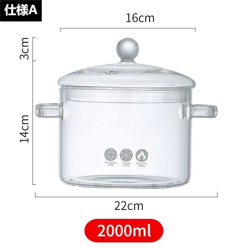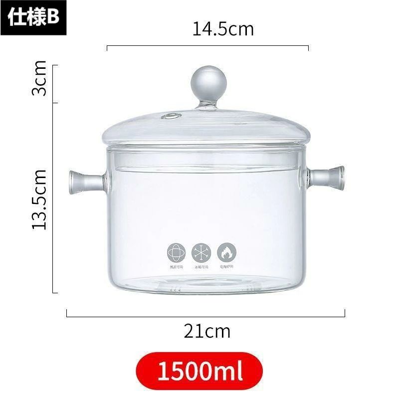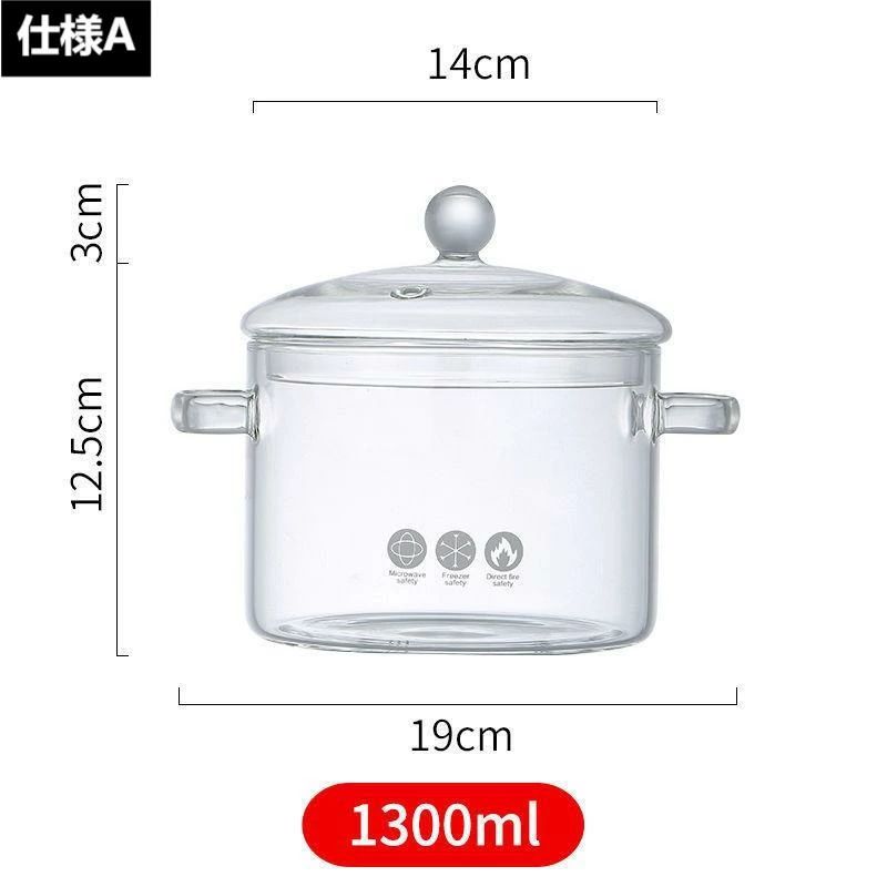 ガラス調理鍋 スープ鍋 耐熱ガラス鍋 調理 製菓道具 調理器具 蒸し器 通販 仕様A 仕様B 1300mL 1500mL 2000mL