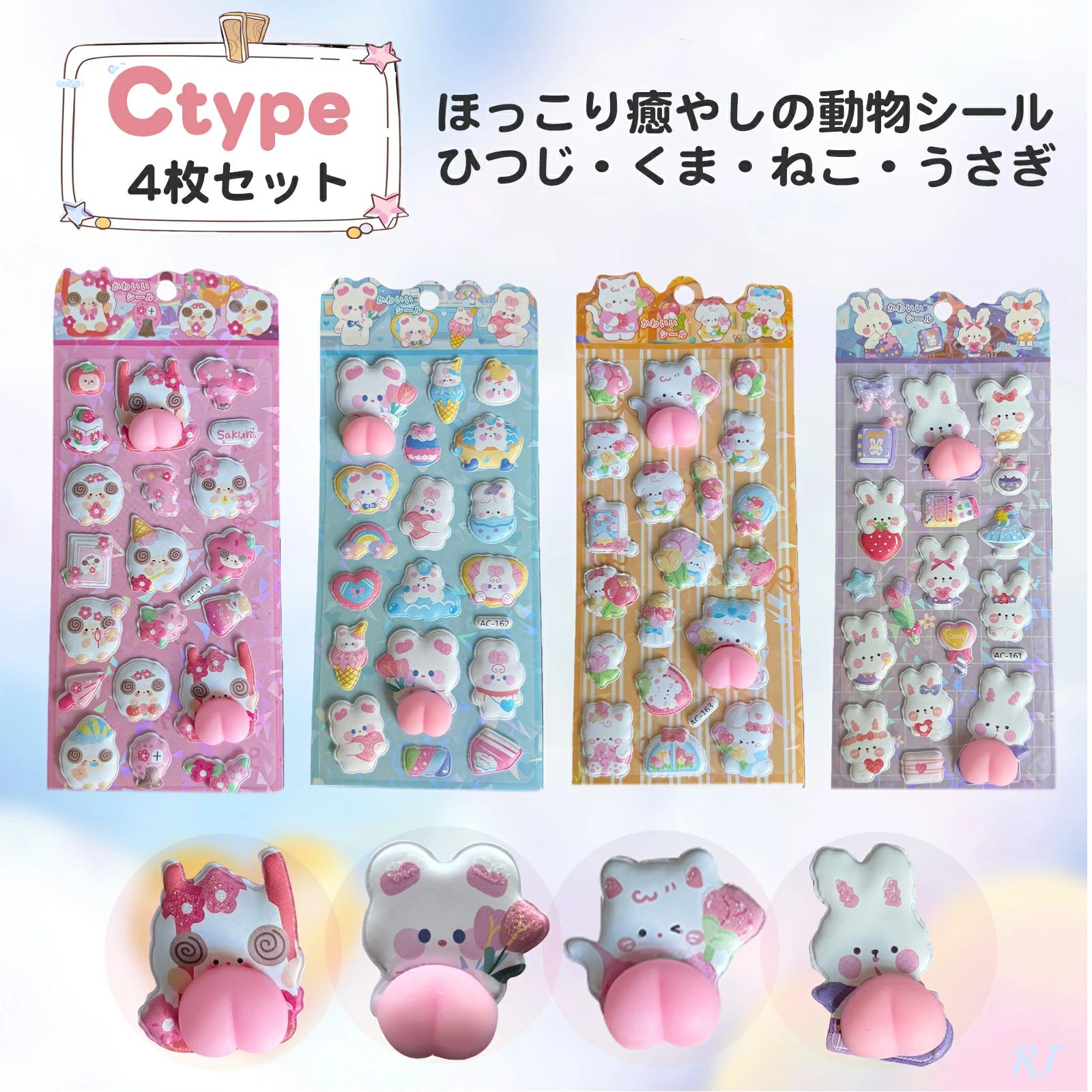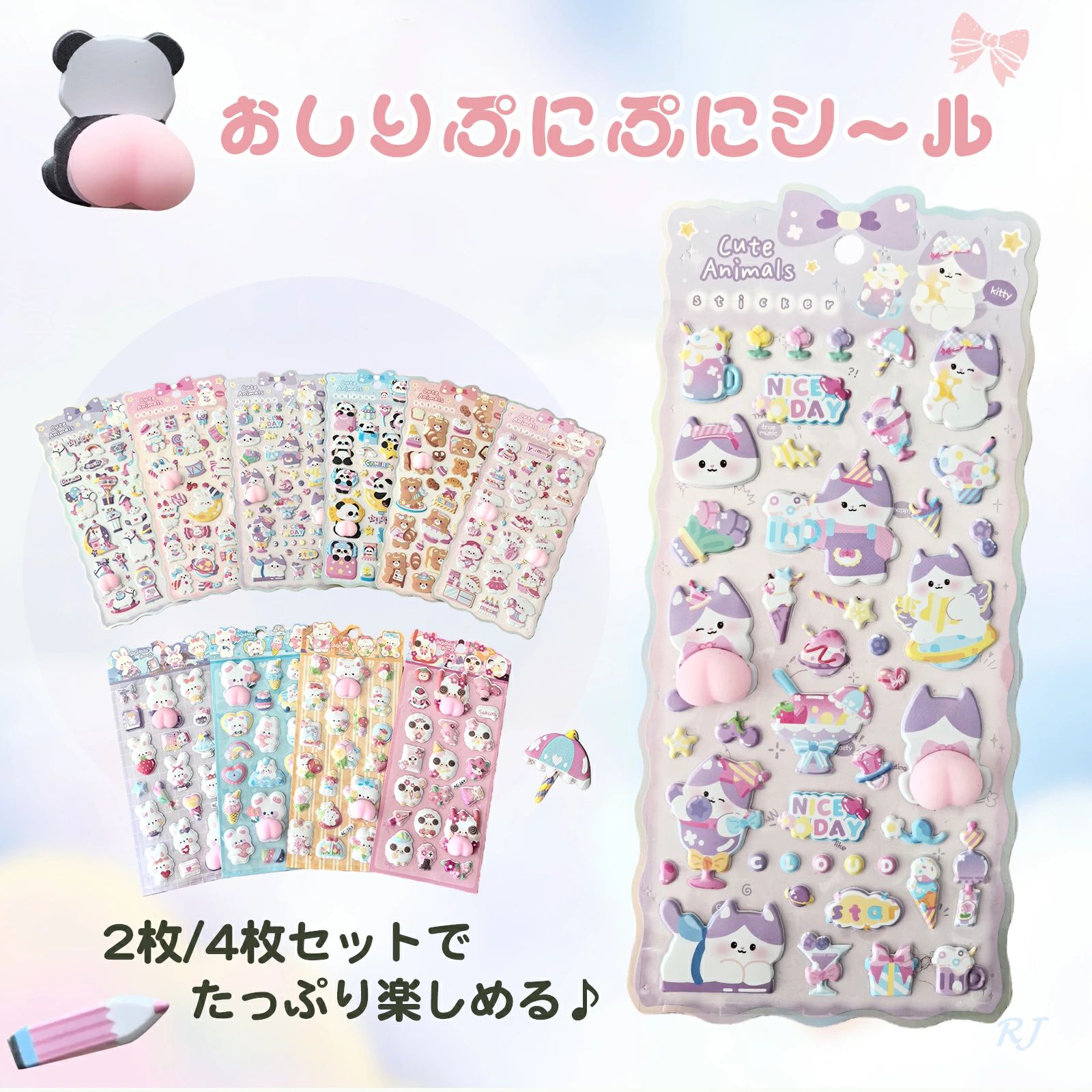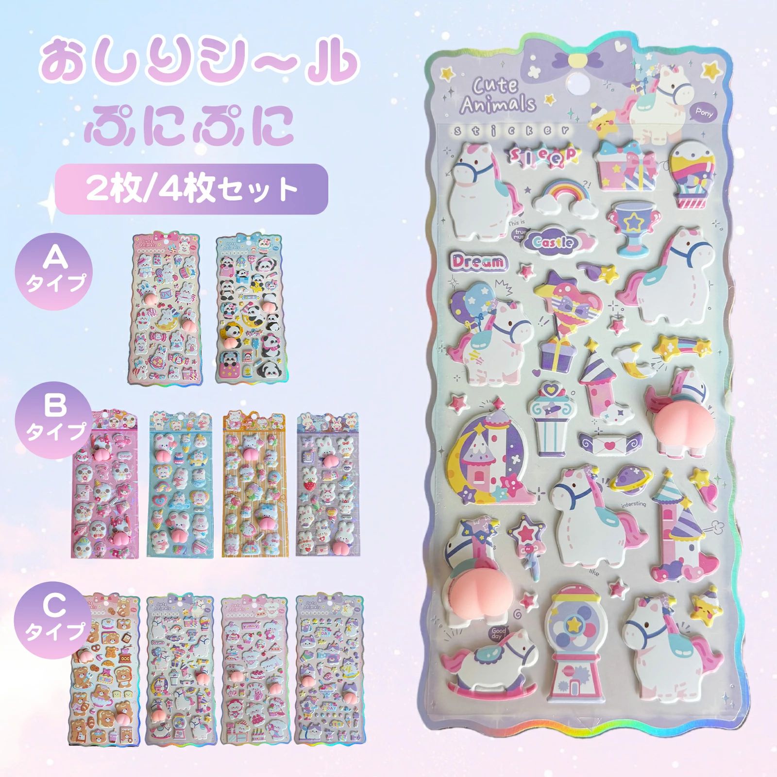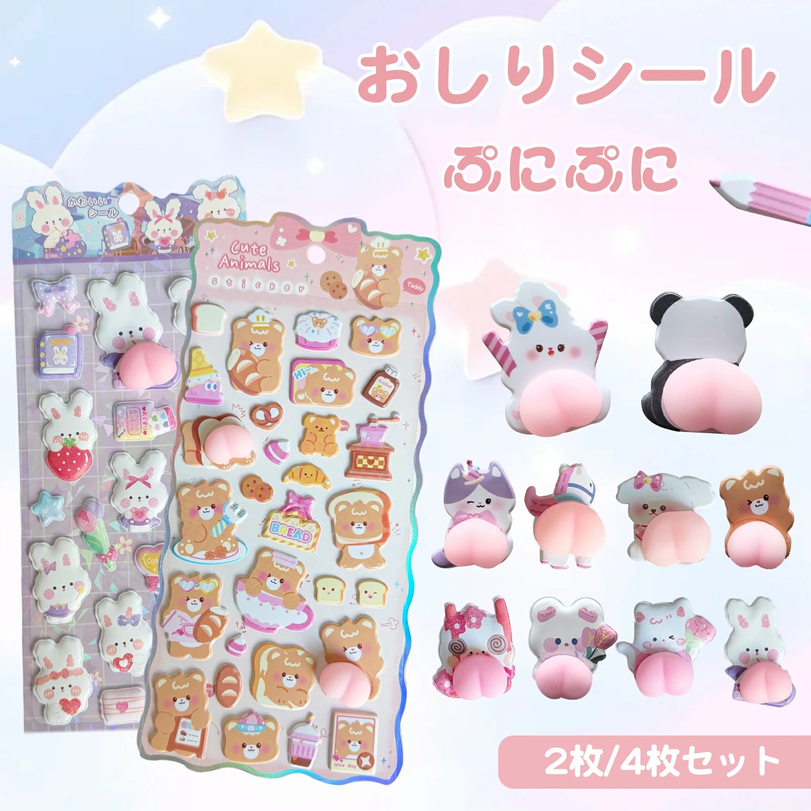 おしりシール ぷくぷくシール 4枚セッ 日用品雑貨 文房具 手芸 新作 Aセット Bセット Cセット