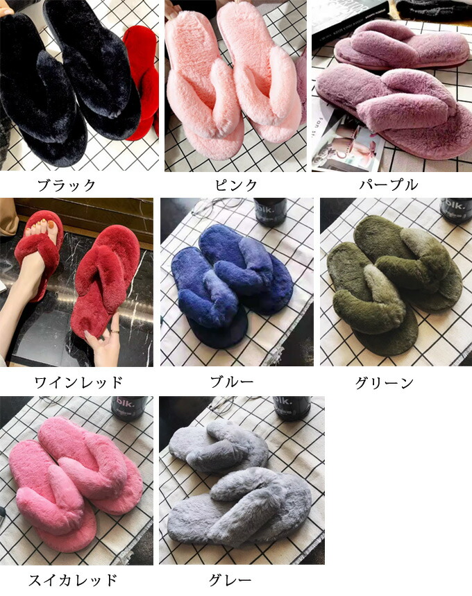 ビーチサンダル ルームシューズ ファー 靴 早い者勝ち ブラック ピンク パープル ワインレッド ブルー グリーン スイカレッド グレー 230-235 240-245 250-255 260-265 270-275