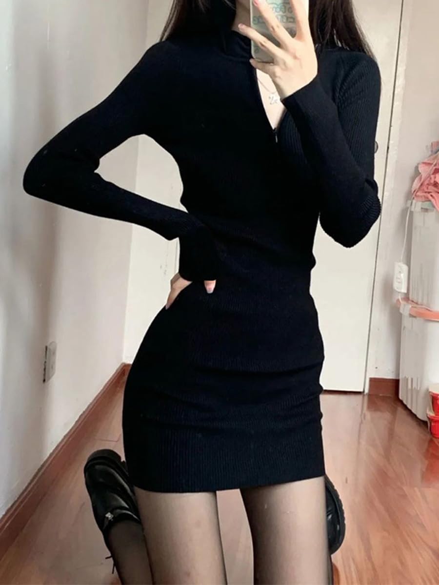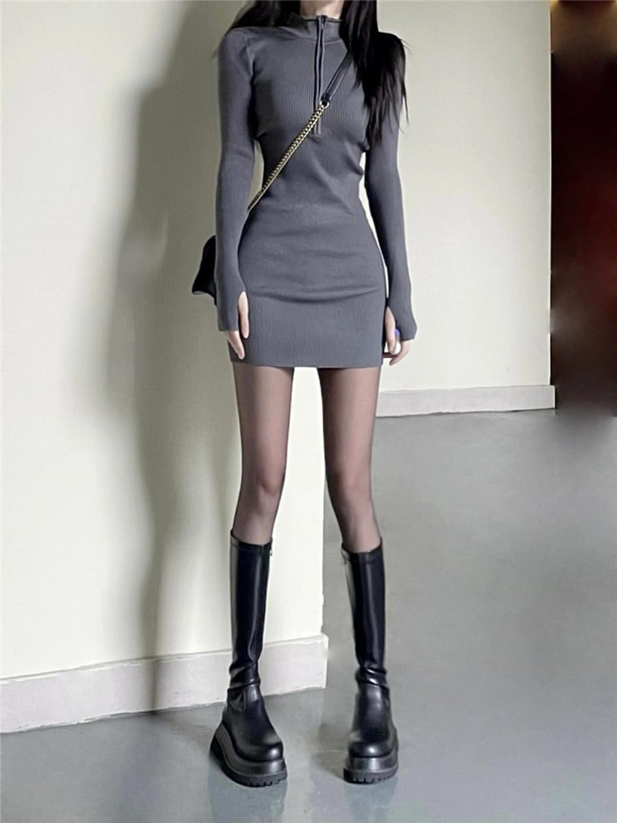 ニット ミニ ワンピース レディース レディースファッション 新登場! グレー ブラック S M L XL