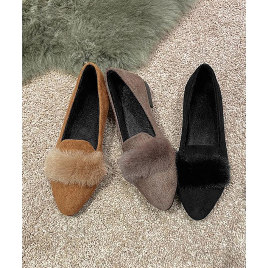 ファー付きパンプスポインテッドトゥ韓国 靴 続々登場 ブラック キャメル モカ 22.5cm(35) 23.0cm(36) 23.5cm(37) 24.0cm(38) 24.5cm(39)