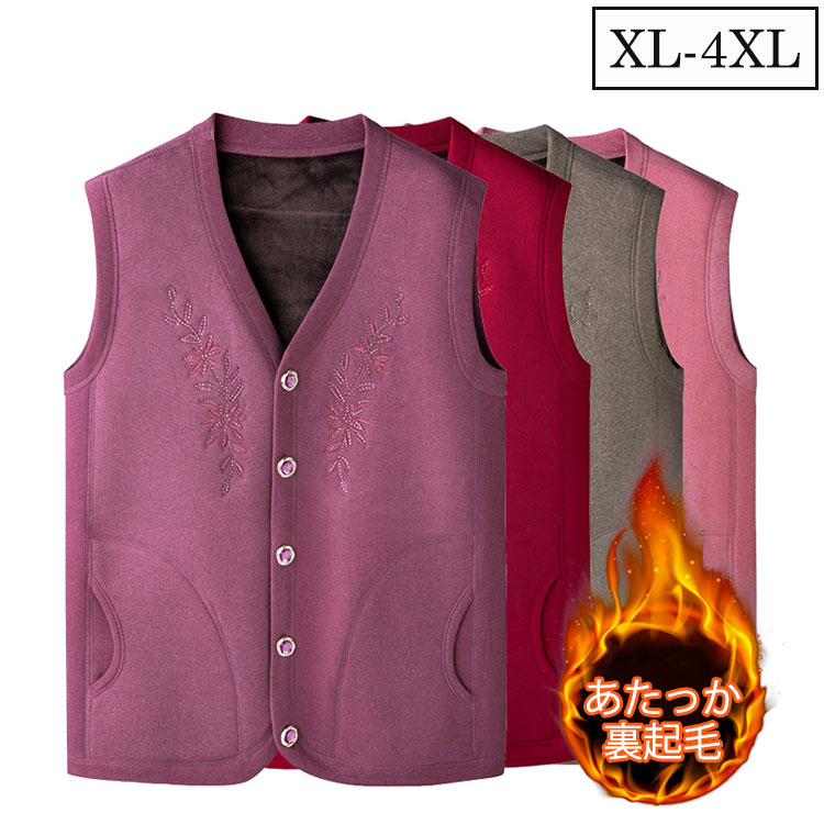 秋冬 おばあちゃん用裏起毛ベストです。保温効果は抜群!伸縮性も◎ パープル キャメル色 レッド ピンク