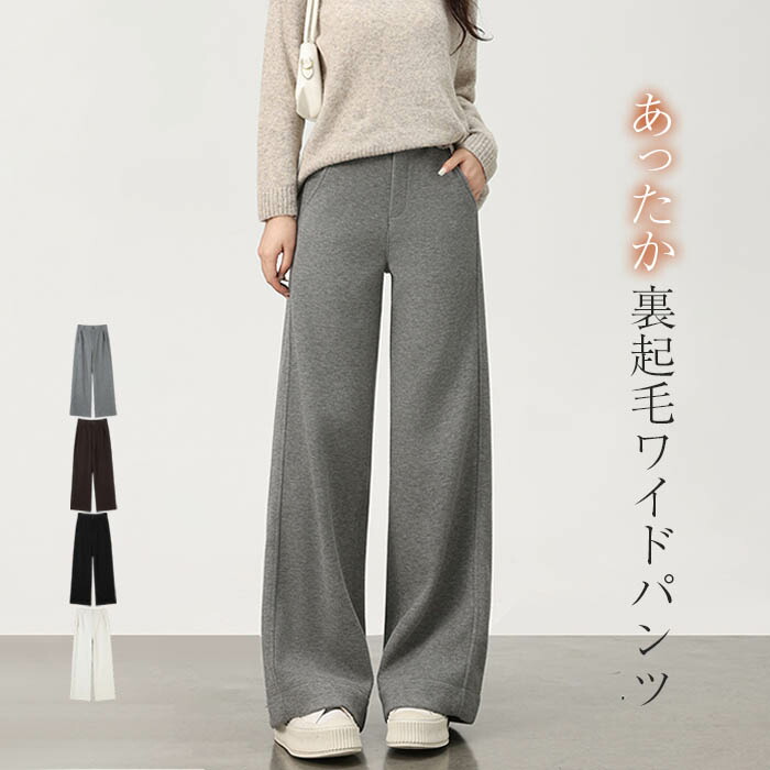 裏起毛 ワイドパンツ パンツ レディース ボトムス ロング 無地 ワイド セミワイド あったか ウール調 長ズボン シンプル きれいめ 細見え 体型カバー 通勤 OL オフィスカジ スラックス