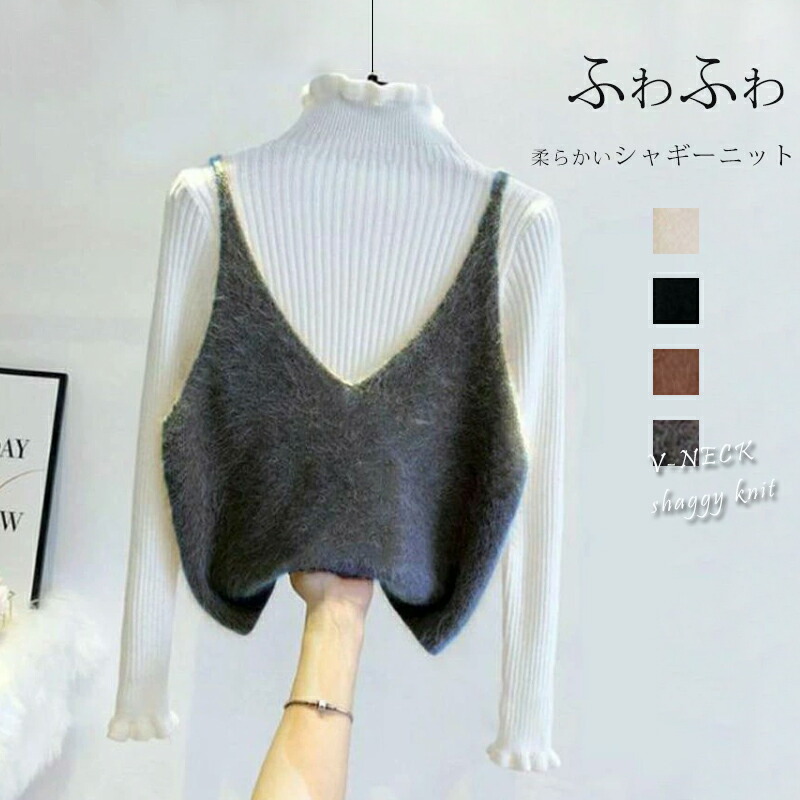 翌日発送 シャギー ベスト レディース Vネック ニット ビスチェ キャミソール トップス ニットベスト ショート シャギーニット シャギーベスト 秋冬 レイヤード おしゃれ Vネックベスト