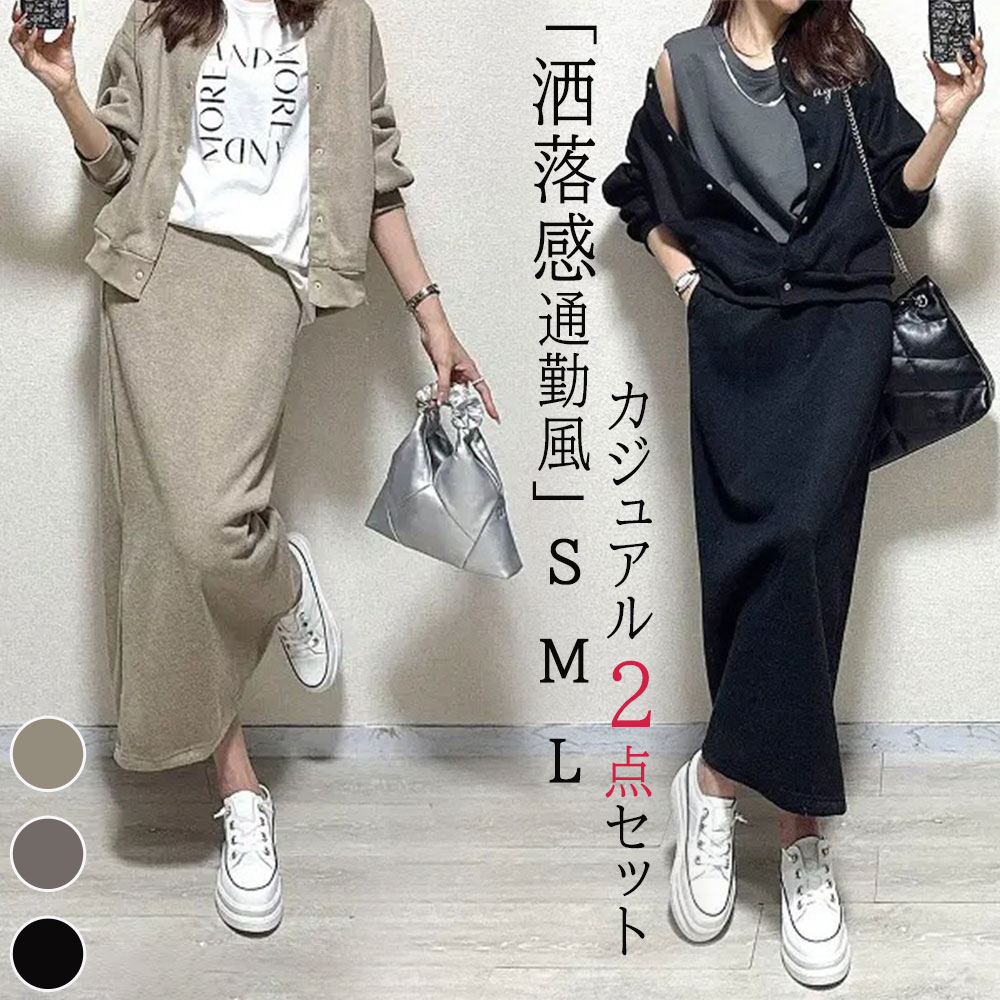 セットアップ レディース 2点セット 長袖 秋 冬 上下セット トップス 無地 ゆったり スカート キレイめ スタジャン ジャケット 着痩せ きれいめ パーカー 韓国風 大人 通勤 シンプル