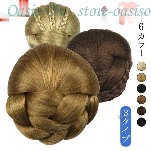 ダンス ウィッグ エクステ お団子 シニヨン ヘアピース シニヨンネット 編み込み かつら 付け毛 髪飾り
