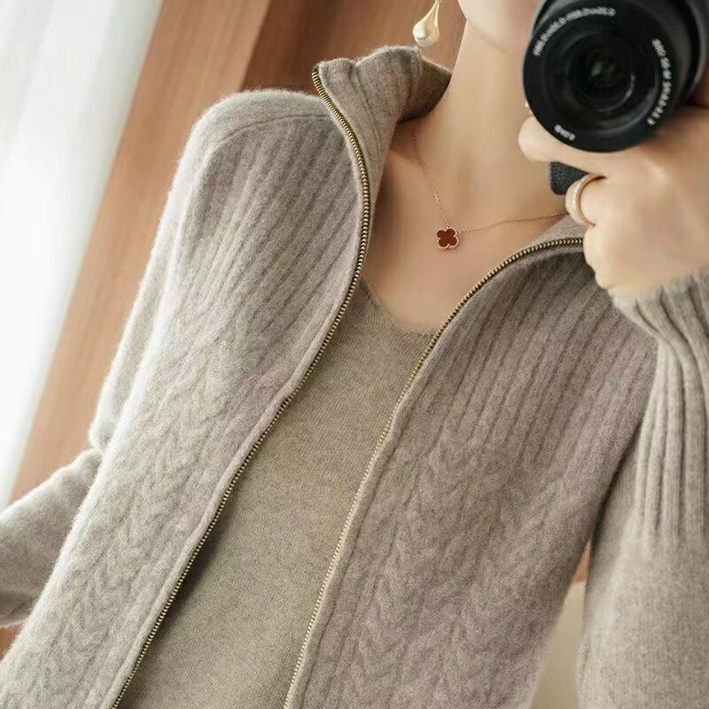 ジップアップ カーディガン 長袖 秋冬 ニットカーディガン セーター トップス レディース ニットセーター 羽織もの 無地 アウ ジッパー