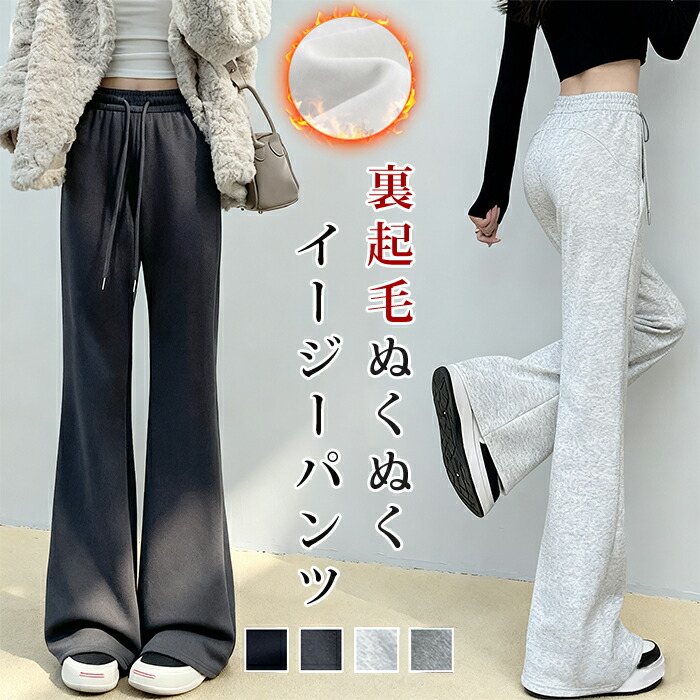 フレアパンツ 裏起毛 体感+5℃ レディース ワイドパンツ ロング ウエストゴム 暖か 防寒 スウェット ボトムス ロングパンツ ぬくぬく ズボン 大人 ルームウェア