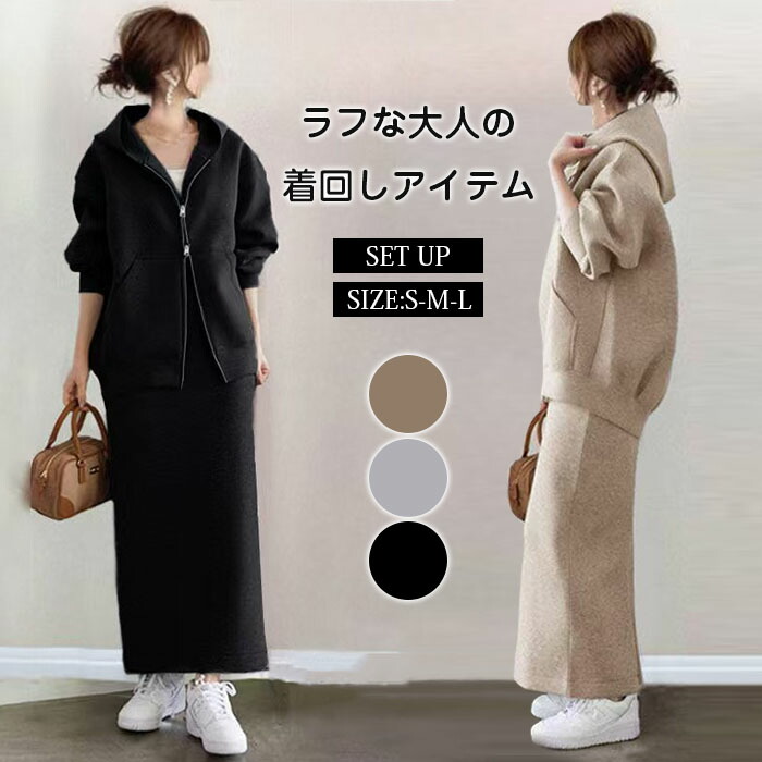 セットアップ スカート レディース カジュアル ロングスカート パーカーセットアップ 長袖 スカートスーツ トップス お呼ばれ オフィス 綿混 秋冬