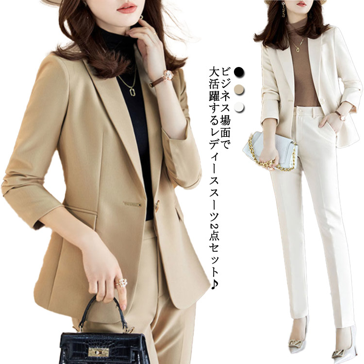 上品なデザインのレディースジャケットパンツ2点セット。通勤やフォーマルシーンに最適。