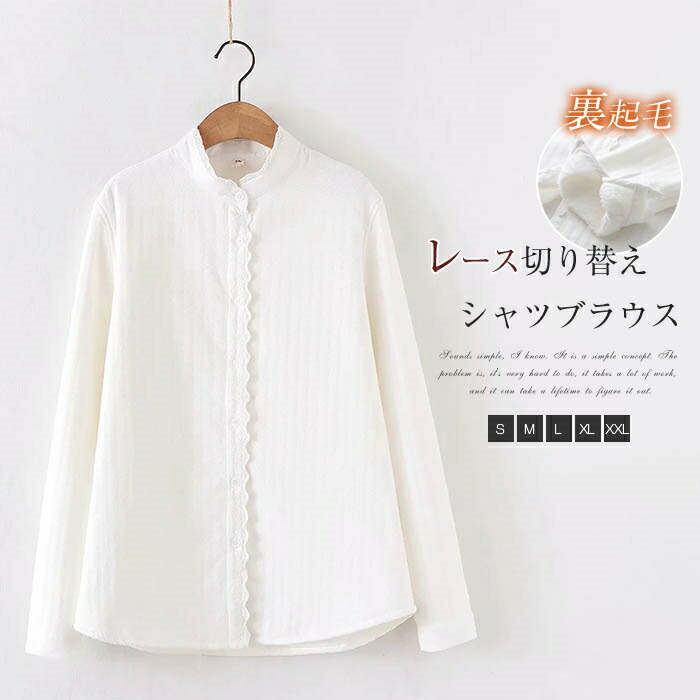 レース 切り替え シャツ 長袖 レディース 春秋 秋冬 綿 コットン 2タイプ 裏起毛 裏起毛シャツ シャツ 羽織 シャツジャケット トップス 重ね着 シャツブラウス 春 秋 冬 通勤 ゆったり 白