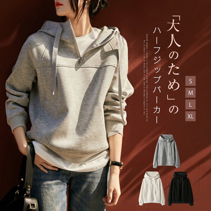 パーカー レディース 秋 冬 トップス スウェット 長袖 フード付き Tシャツ tシャツ シンプル カジュアル 着回し 大人 無地 プルオーバー ゆったり 大 体型カバー