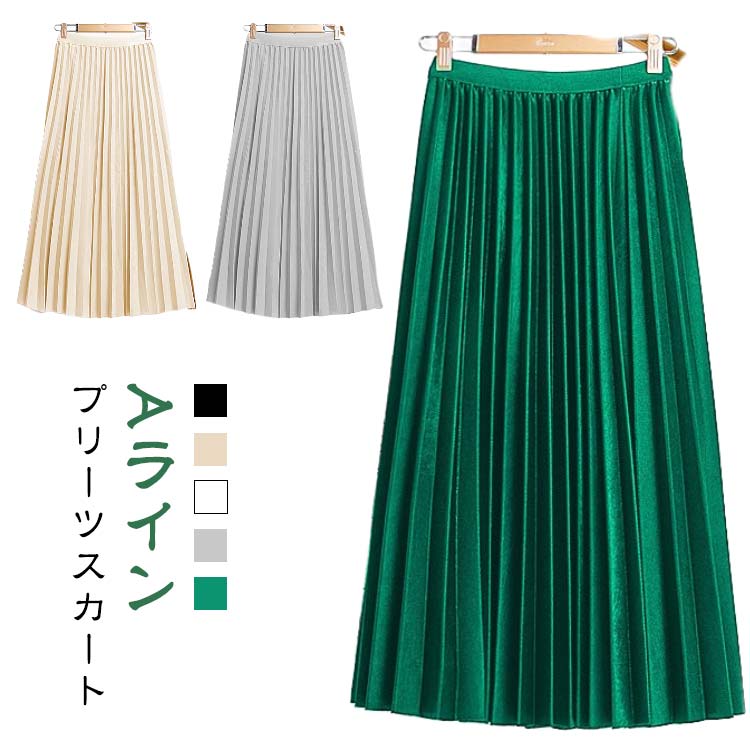 スカート プリーツスカート 5色 春夏 春 レディース ハイウエスト フレア ロング ミモレ丈 大きいサイズ マキシ ウエストゴム A プリーツ
