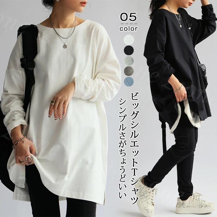 ロングTシャツ レディース お尻が隠れる トップス コットン 長袖 新作 秋冬 ロング ビッグシルエット トレーナー プルオーバー ゆったり