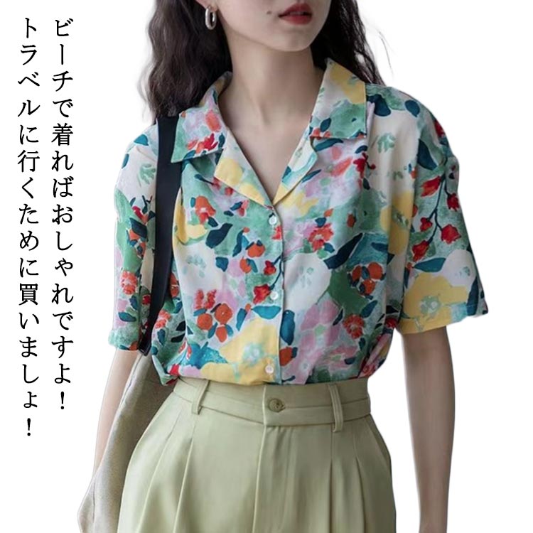 シャツ ブラウス 花柄 アロハシャツ レディース トップス 半袖 ハワイシャツ 開襟 レトロ ゆったり カジュアル 大きいサイズ ビーチ 軽い