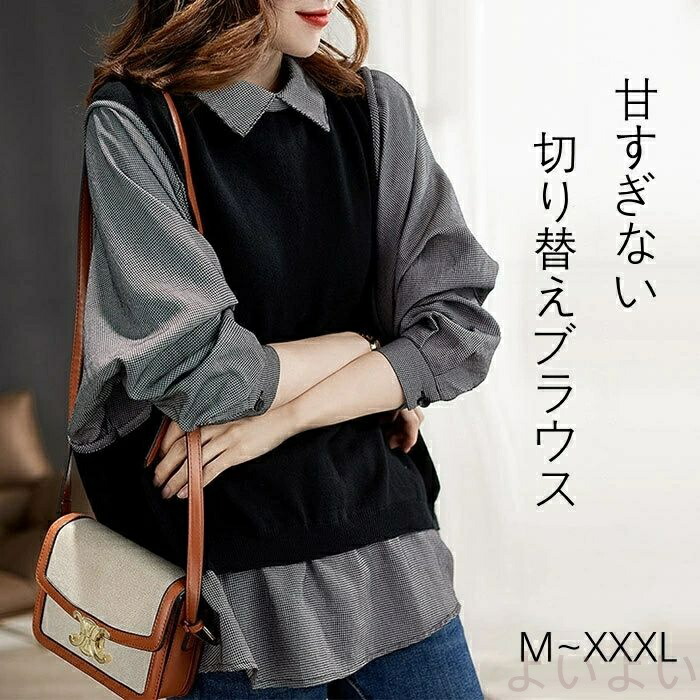 シャツ ブラウス チュニック レディース 秋 トップス 長袖 切り替え シャツブラウス 異素材 大きいサイズ プルオーバー ナチュラル カットソー 無地 折り襟