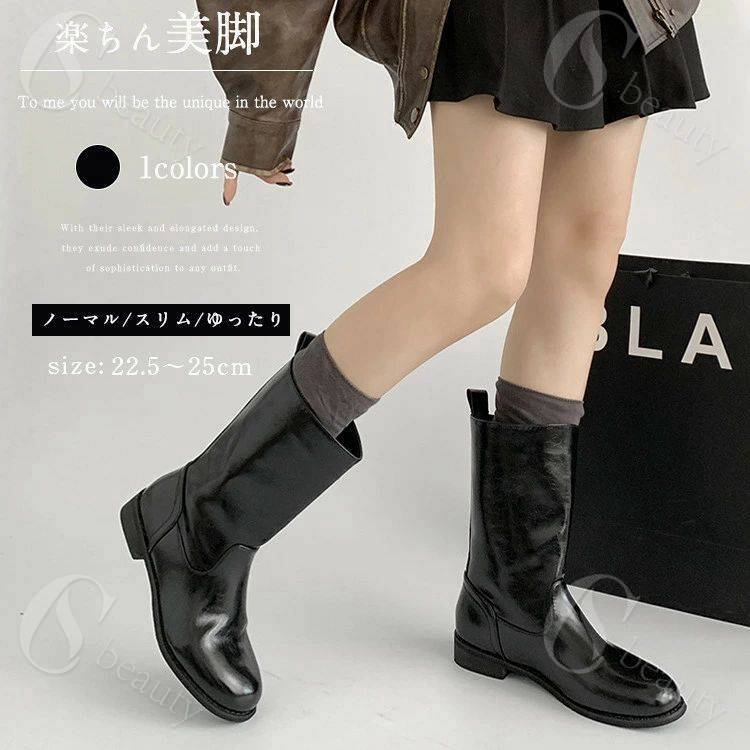 ウエスタンブーツ PU 黒 ゆったり 韓国 ミドルブーツ シンプル ぺたんこ レディース ストレッチ エンジニアブーツ 本革 合皮 ショート丈 学生 通勤 通学 美脚 春夏秋冬 歩きやすい 疲れ 幅広