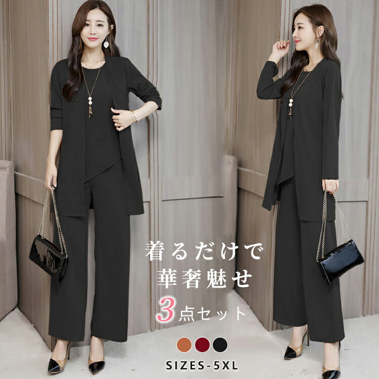 3点セット パンツドレス フォーマル ロングパンツ 入学式 ママスーツ 長袖 大きいサイズ 結婚式 入学式 スーツ 卒業式 体型カバー ワイドパンツ 通勤 ビジネス フォーマル スーツパンツ
