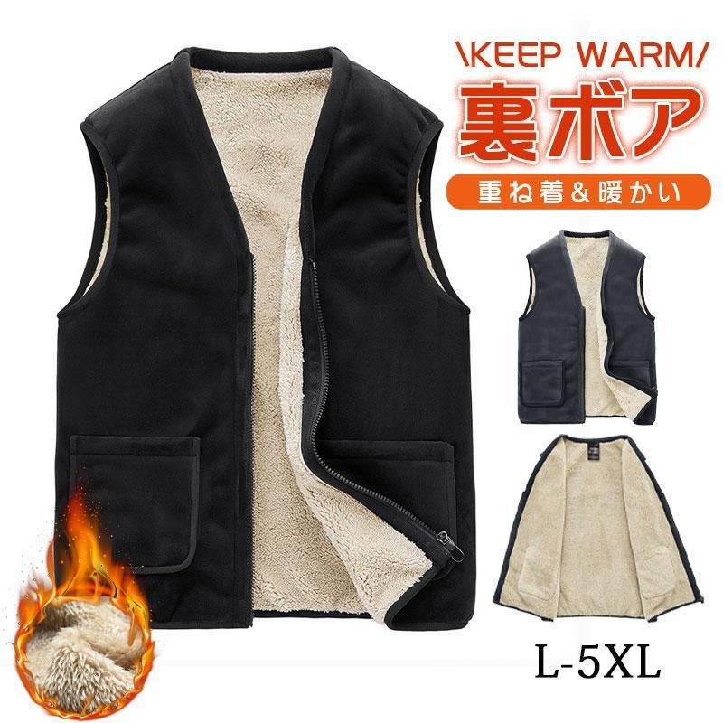 ベスト メンズ 前開き 裏ボア 裏起毛 暖かい 室内着 ノーカラー インナー 防寒着 トップス ジレ 保温 冬 厚手 アウトドア 父の日 ギフト 防風