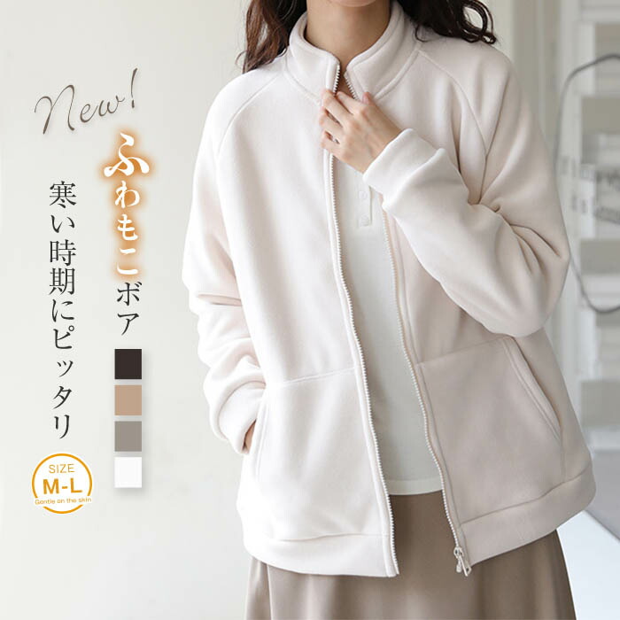 ボア ブルゾン 秋 冬 レディース ジップアップ コート ファーコート ボアコート ボアジャケット アウター トップス フリースジャケット 防寒 秋冬 カジュアル スタンドカラー モコ あたっか