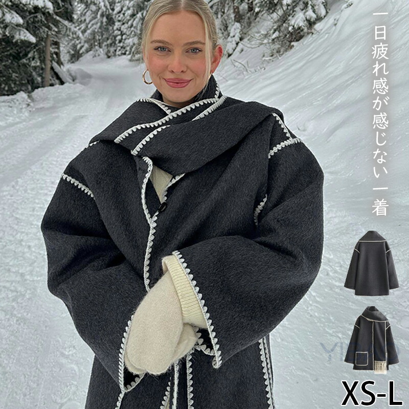 厚手コート ウールのコート ショート丈上着 トップス レディース 大人 秋冬 ショート丈 ラシャコート スカーフつぎて アウター ファッション 着痩せ レジャー 欧米風 通勤 30-40代