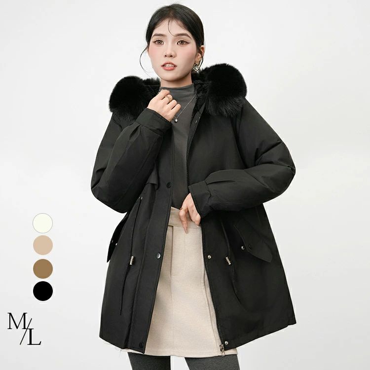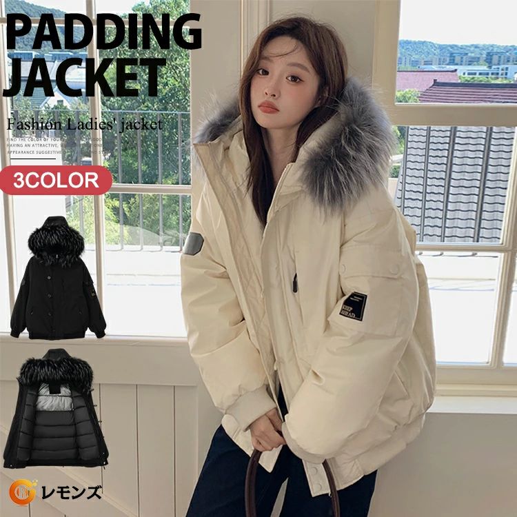 ファーフード付き アウター 中綿ジャケット レディース コート ブルゾン 長袖 ジャケット フェイクダウン中綿ブルゾン ゆったり モッズコート ミリタリー 秋 冬 防寒 黒 白 韓国 ファッ ブラック