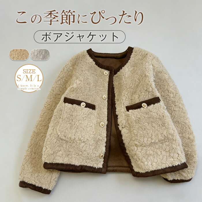 ボア ジャケット ノーカラー コート レディース アウター ファージャケット 秋 冬 長袖 もこもこ フリース トップス ゆったり シンプル 大人 可愛い ボアフリース