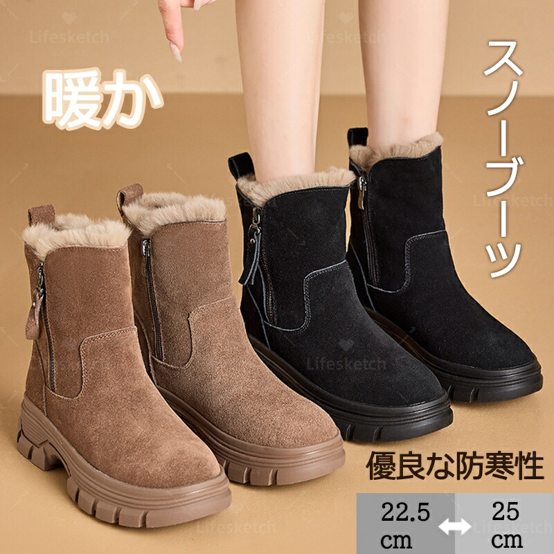 スノーブーツ レディース 滑らない ファスナー スノーシューズ 通勤 北海道 防寒靴 ミドル丈 軽量 履きやすい 防滑 防寒 ふわふわ ハイカット 裏起 ウィンターブーツ