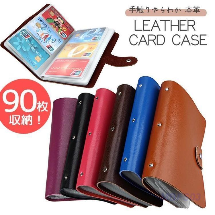 クレジットカードケース 牛革 大容量 90枚収納 手帳型 カードファイル マルチケース 名刺入れ カード入れ カードホルダー 本革 無地 カー レザー