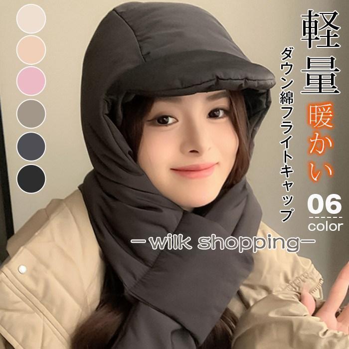 レディース フライトキャップ マフラー付き帽子 フード付きマフラー ネックウォーマー 綿 パイロットキャ 帽子