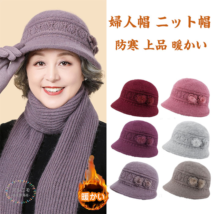 おばあちゃん ニット帽 レディース 帽子 秋冬 母 シニア ハット 婦人帽 ニットキャップ 秋冬 ぼうし 中高年 祖母 お母さん 防寒 上品 暖かい ぽかぽか ぬくぬく あったか帽子 おしゃれ