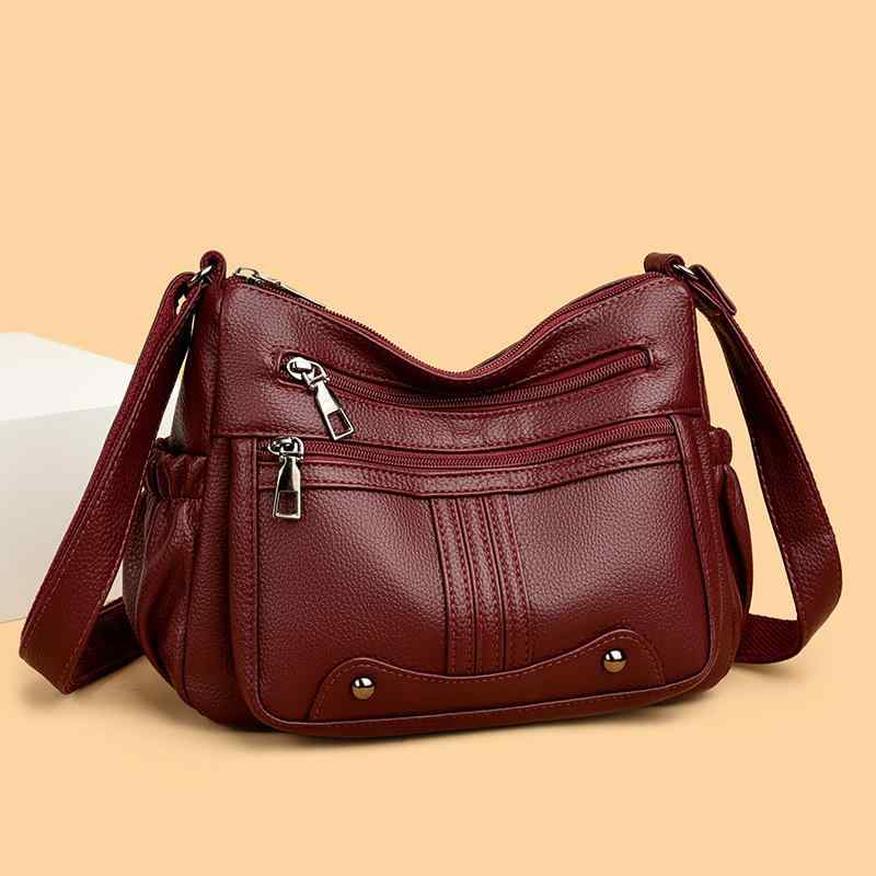 ショルダーバッグ レディース 女性用 PUレザー フェイクレザー クロスボディ 肩掛け 欧米レトロ ヴィンテージ カジュアル ライダースバッグ デイリーユース ジップ開閉 ミドルサイズ ソ 多ポケット
