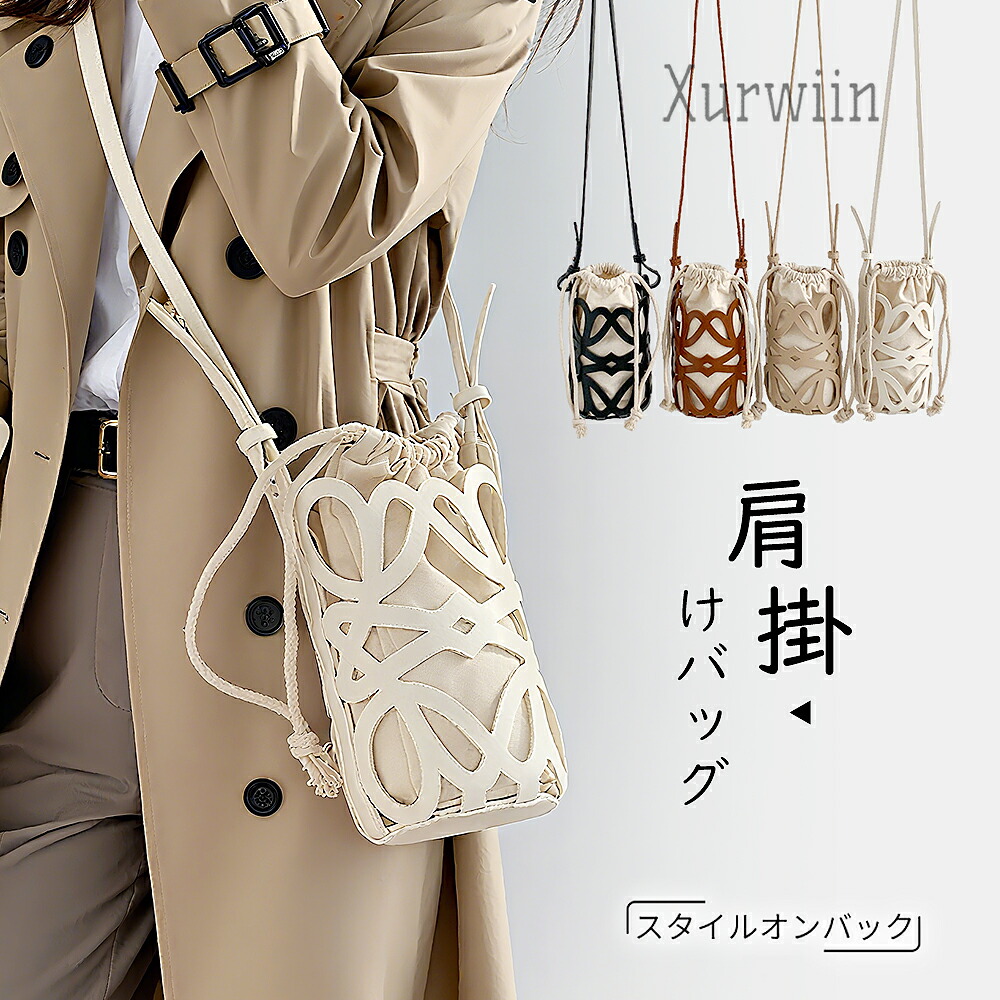 ショルダーバッグ レディース かごバッグ ショルダー バッグ 斜め掛けバッグ スマホショルダーバッグ レザー 巾着バッグ カットワーク 合皮 バケツバッグ かわいい ミニポシ スマホポーチ