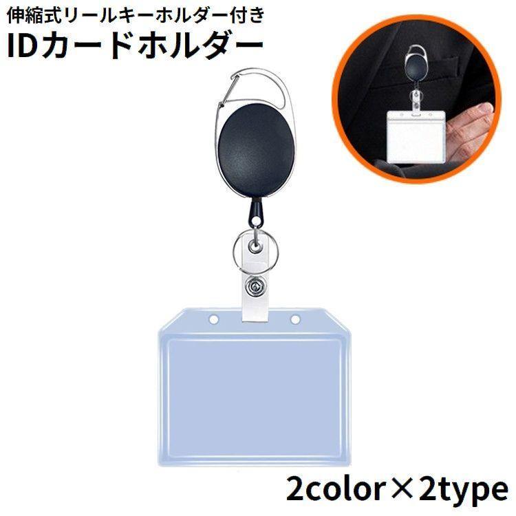 IDカードホルダー IDカードケース パスケース 縦型 横型 伸縮式 定期入れ 社員証 ビジネス 伸びるリールキーホルダー付き