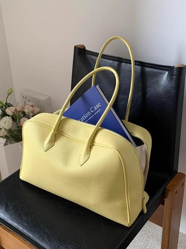 バッグ レディース 韓国ファッション レトロ シンプル ライチ型押し 大容量 通勤 ボストンバッグ ハンドバッグ ショルダーバッグ 合皮 イエロー 春夏 横型 柔らかな素材感 ファスナ 大人カジュアル