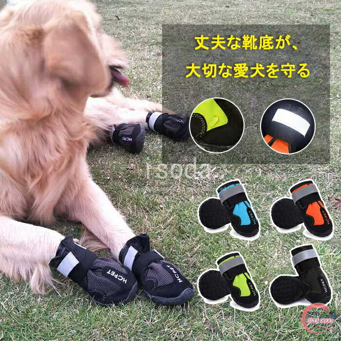 犬 靴 脱げない 4足セット犬 雪 ブーツ 犬用靴 ドッグシューズ ドッグブーツ 防水 防寒 暖かい 雨用ブーツ 雨用靴 光る 反射 安全 安心 中大型犬用靴 雨の日 お散歩ブーツ 滑り止め