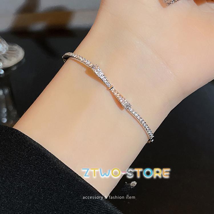 ブレスレット レディース リボン CZ 細め キラキラ オシャレ 上品 カジュアル プレゼント 18kgp