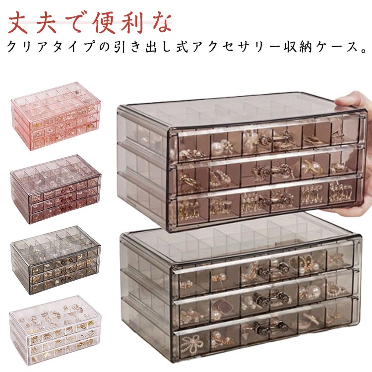 イ ピアス 仕切り付き ジュエリーケース クリア収納ケース アクセサリー什器 クリア 引き出し 3段 大容量 透明