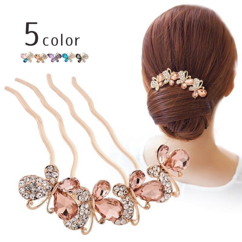 コーム ヘアコーム 簪 髪留め ヘアアクセサリー 髪飾り レディース 女性 婦人 ファッション小物 ビジュー チョウ かわいい おしゃれ 蝶