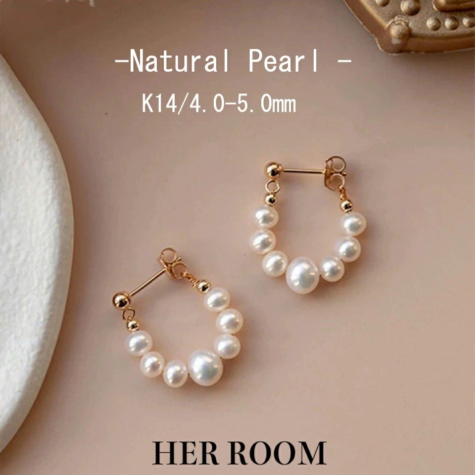ピアス レディース パール シンプル 7粒上品 華やか ワンポイント パーティー フォーマル 4mm-5mm 金 オケージョン