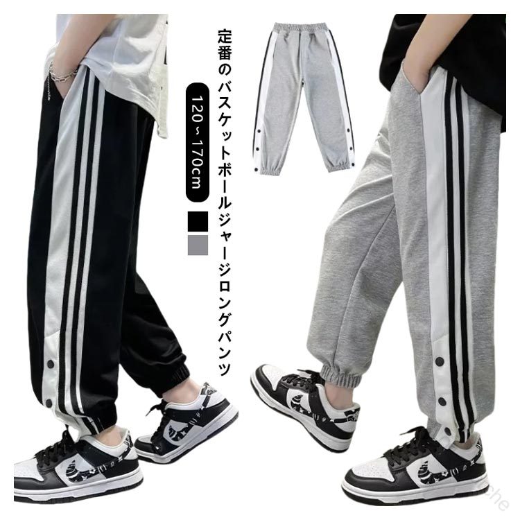 キッズからジュニア向けバスケ練習用パンツ 裾ボタン付きサイドラインの長ズボン 動きやすく耐久性抜群で男の子に最適