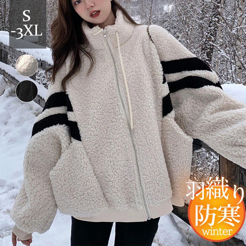 フリースジャケット レディース ボアジャケット ブルゾン トップス バイカラー 羽織り 韓国風 保温 ゆったり ファッション カジュアル