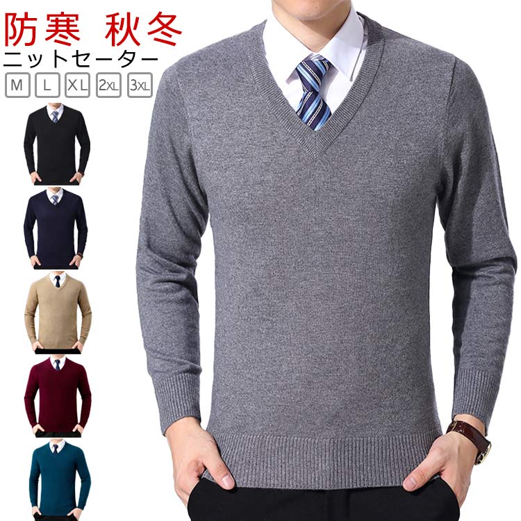 ニットセーター Vネック メンズ 長袖 あったか ニット カジュアル カシミアタッチ 薄手 オフィス ビジネス ゴルフウエア 無地 セーター ウール 洗える トップス 男性 防寒 秋 紳士服