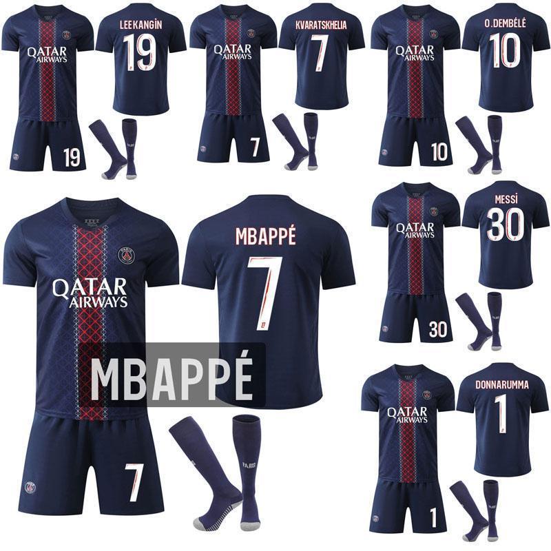 2025-26 ニューモデル 7番エムバペ、10番デンベレ、30番メッシ パリ サンジェルマン 子供 大人用セット ホームユニフォーム