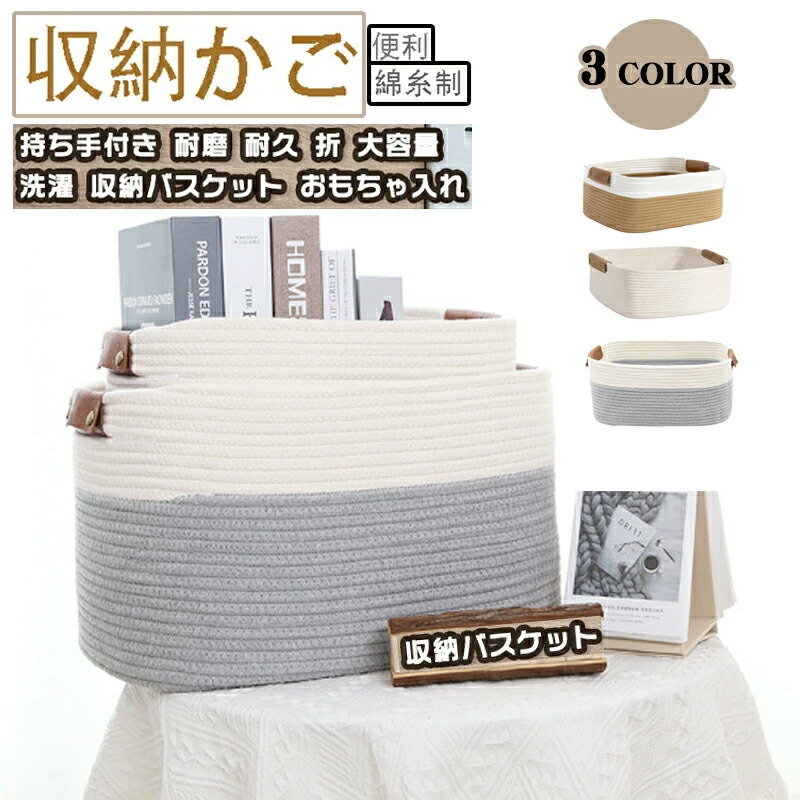 バスケット 収納バスケット かご おしゃれ 収納バスケット 大きい 収納かご 収納カゴ バスケット 北欧 収納 カゴ 布 グレー 白 おもちゃ入れ コットンロープ