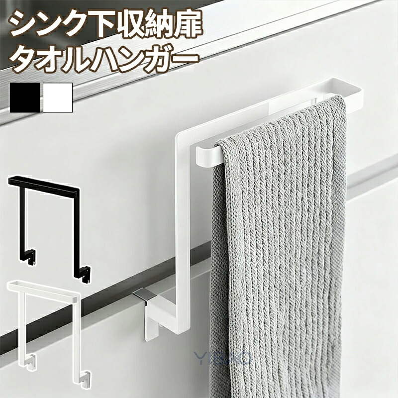 タオルハンガーバー タオル掛け 滑り落ち防止キッチン シンク下収納扉 タワー キッチンシンク下 引き出し 布巾 キッチン収納 台所 北欧 おしゃれ モノトーン 巻き込み防止 ブラック ホワイ 洗面所