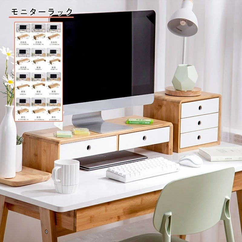 竹製 モニターラック 引出し付き シンプルデザイン 卓上収納 ディスプレイ台 ノートPC台 デスク上スタンド ナチュラル キーボード収納