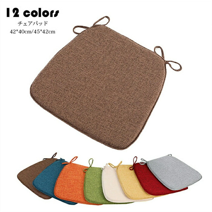 チェアパッド マット 純色 フロアクッション 座布団 おしゃれ 綿麻 クッション 紐付き チェアマット 洗濯できます 高密度スポンジパッド 椅子用 ダイニングチェア用 シートクッション 蒲団 ひも付き